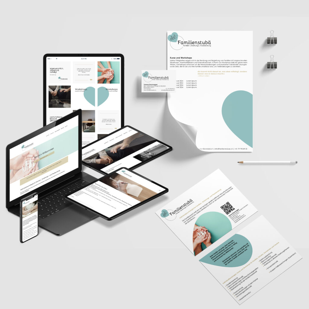 Ein herzensprojekt für Verena Baumegger. Für die neueröffnung ihrer Praxis durfte ich ein komplettes Starter-Paket erarbeiten. Sie bietet Familien- und Paarberatung an und wünschte ein passendes, aussagekräftiges Logo, Websiteauftritt, Visitenkarte, Einladungsflyer und Instagram-Beitragsvorlagen. Ein «türkiser» Faden durch das ganze Erscheinungsbild.